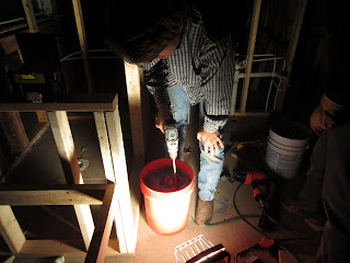 That same night we tried to go ahead and mix the mortar for the shower (it was kind of late..)